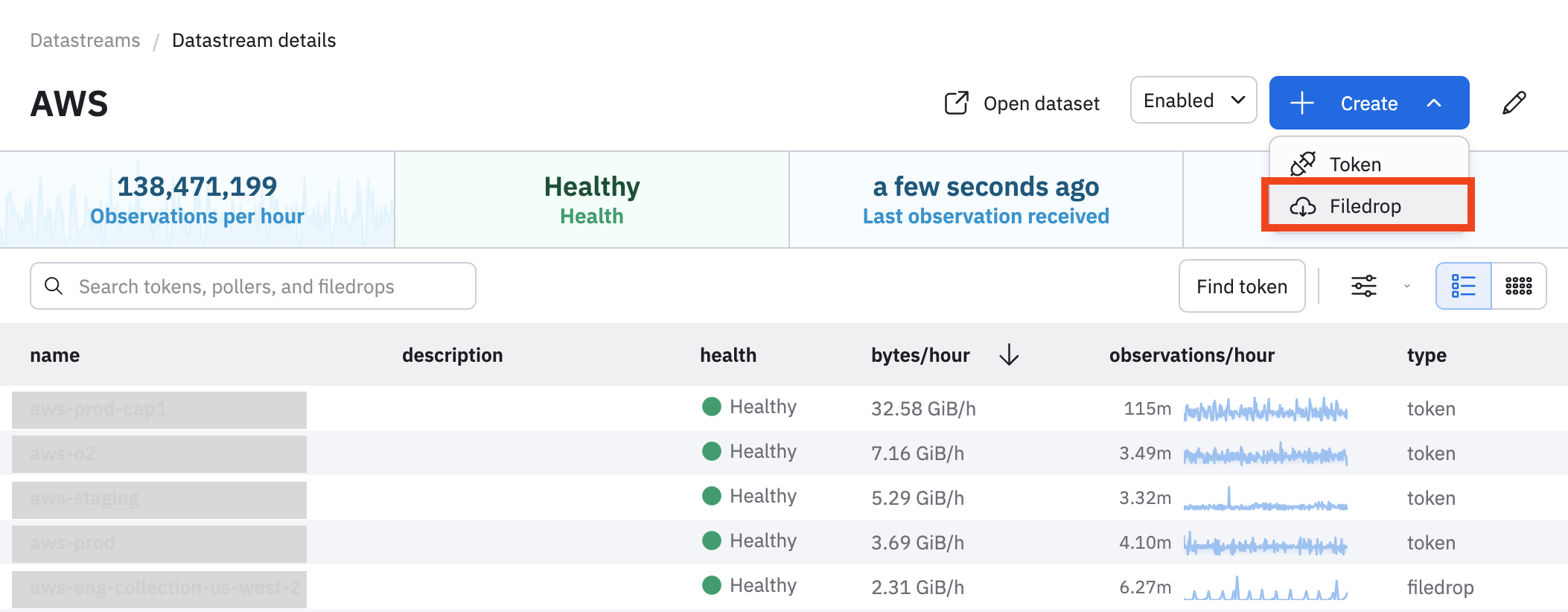 In Observe, select Data & integrations > Datastreams.