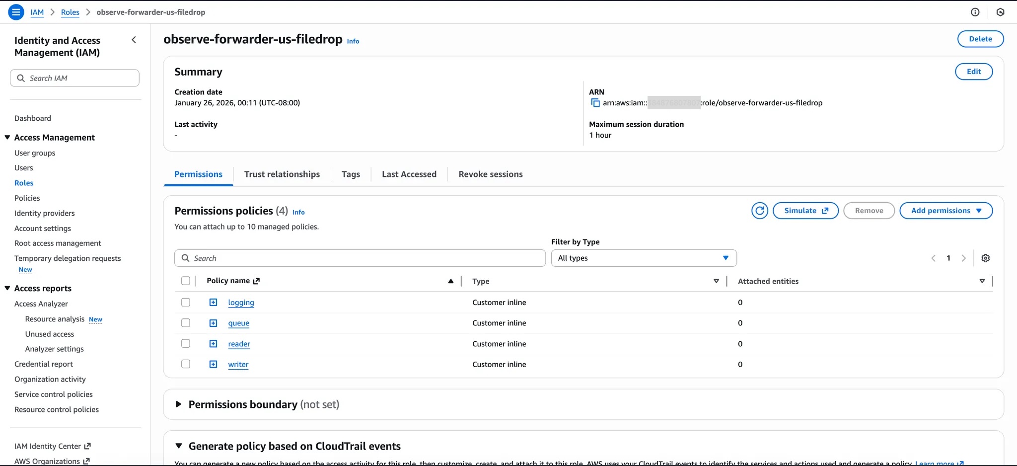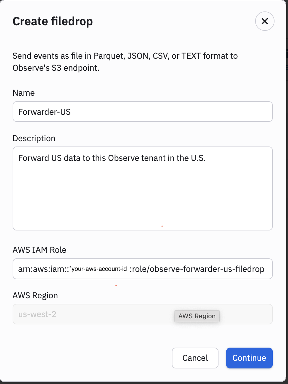 arn:aws:iam::<account-id>:role/observe-forwarder-us-filedrop