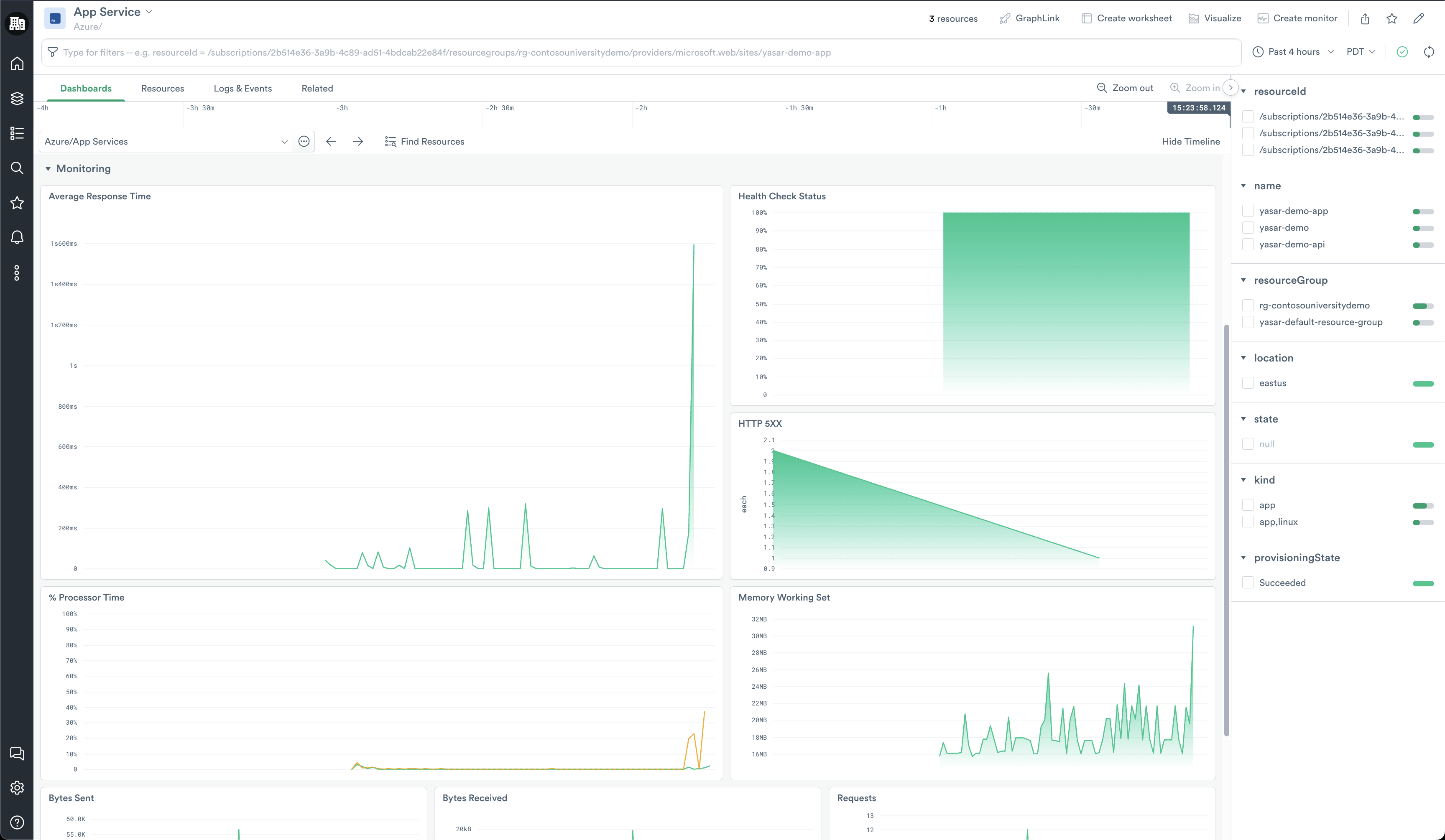 The Azure App Services dashboards provide a high-level overview of your Azure App Service. From the dashboards, you can answer questions such as the following: