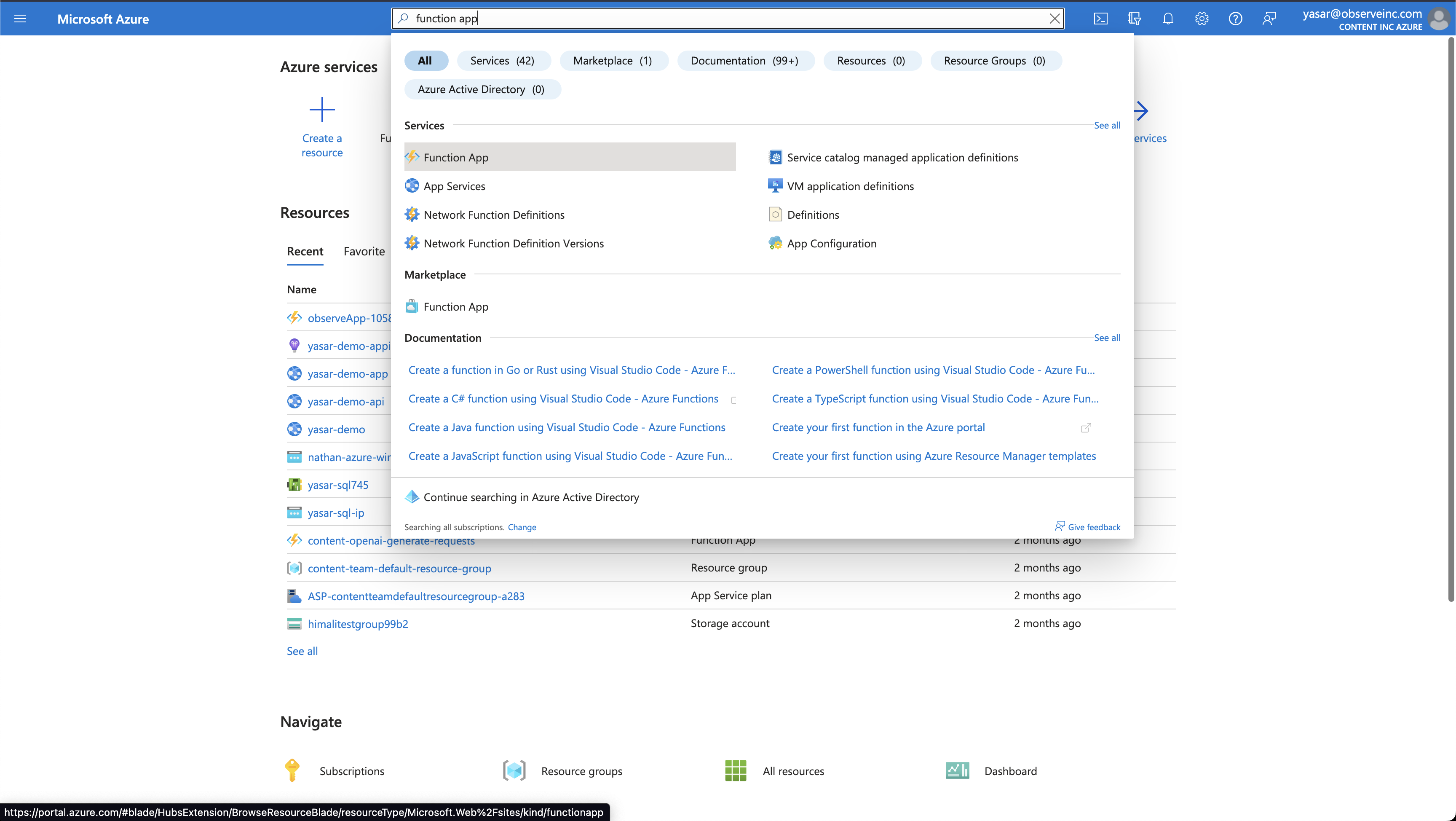 - Select Metrics -> Transaction and select the event hub created by the Observe collection function.
