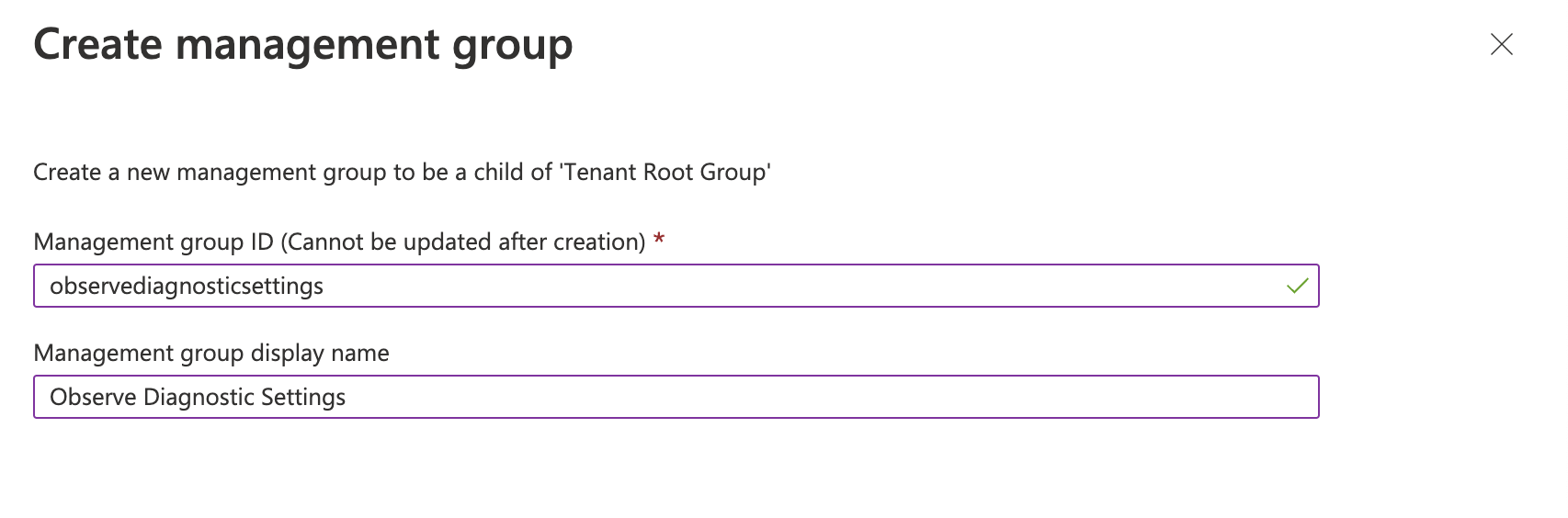 Once you create the management group, you need to move any other management groups or subscriptions to apply under the Observe Diagnostic Settings management group. Use the following steps: