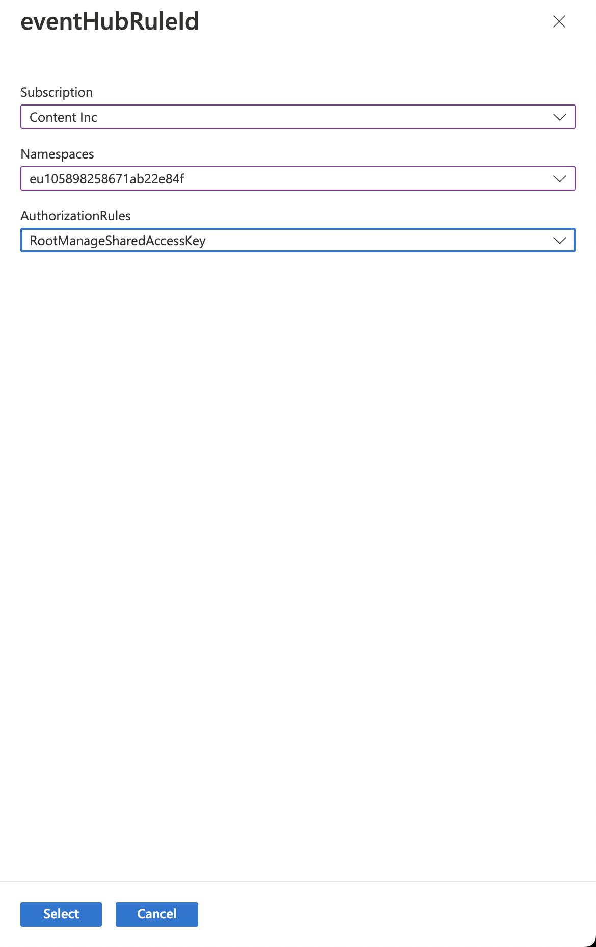 - Set the type to string, and add a strong type of Generic - Microsoft.EventHub/Namespaces/AuthorizationRules.
