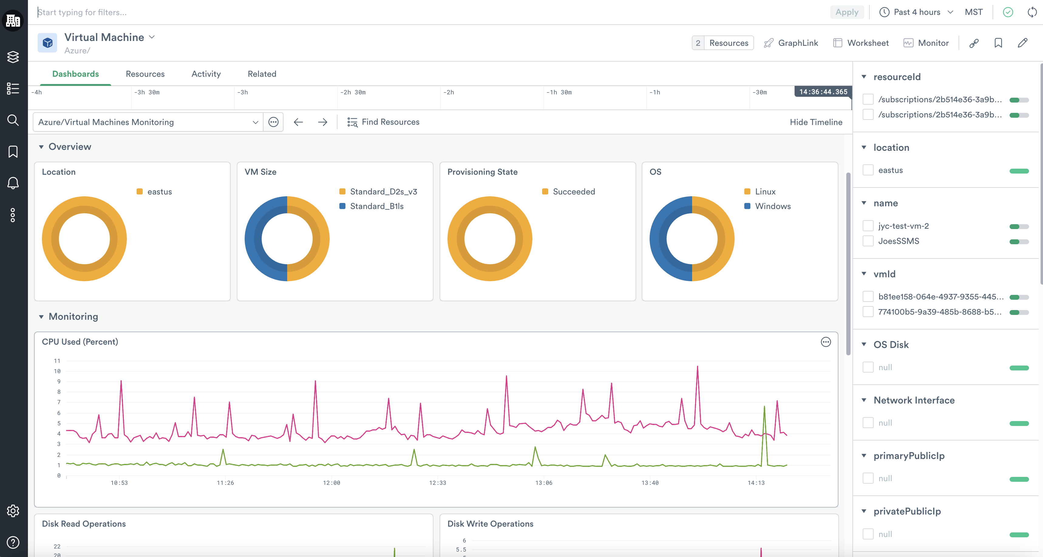 - Additional datasets for resources related to your Virtual Machines, such as Virtual Machine Disks, Network Interfaces, and Public IPs, as well as metrics and logs related to those resources.