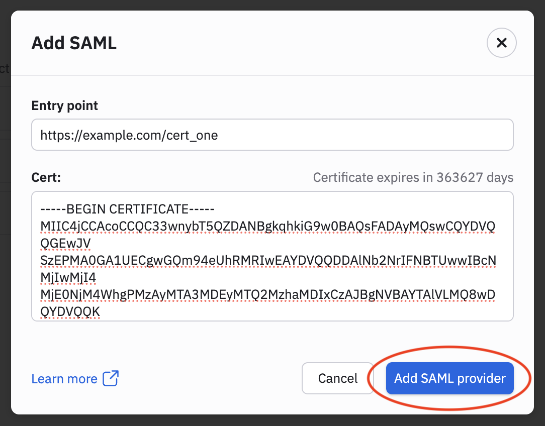 - Click Add SAML.