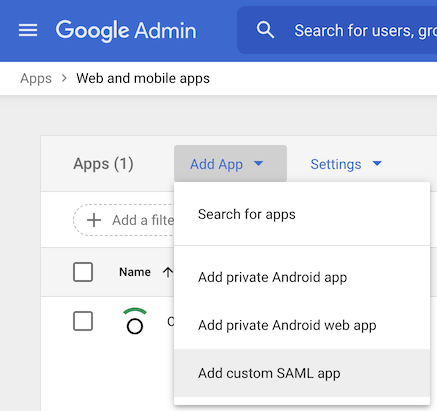 Select Add App > Add custom SAML app.