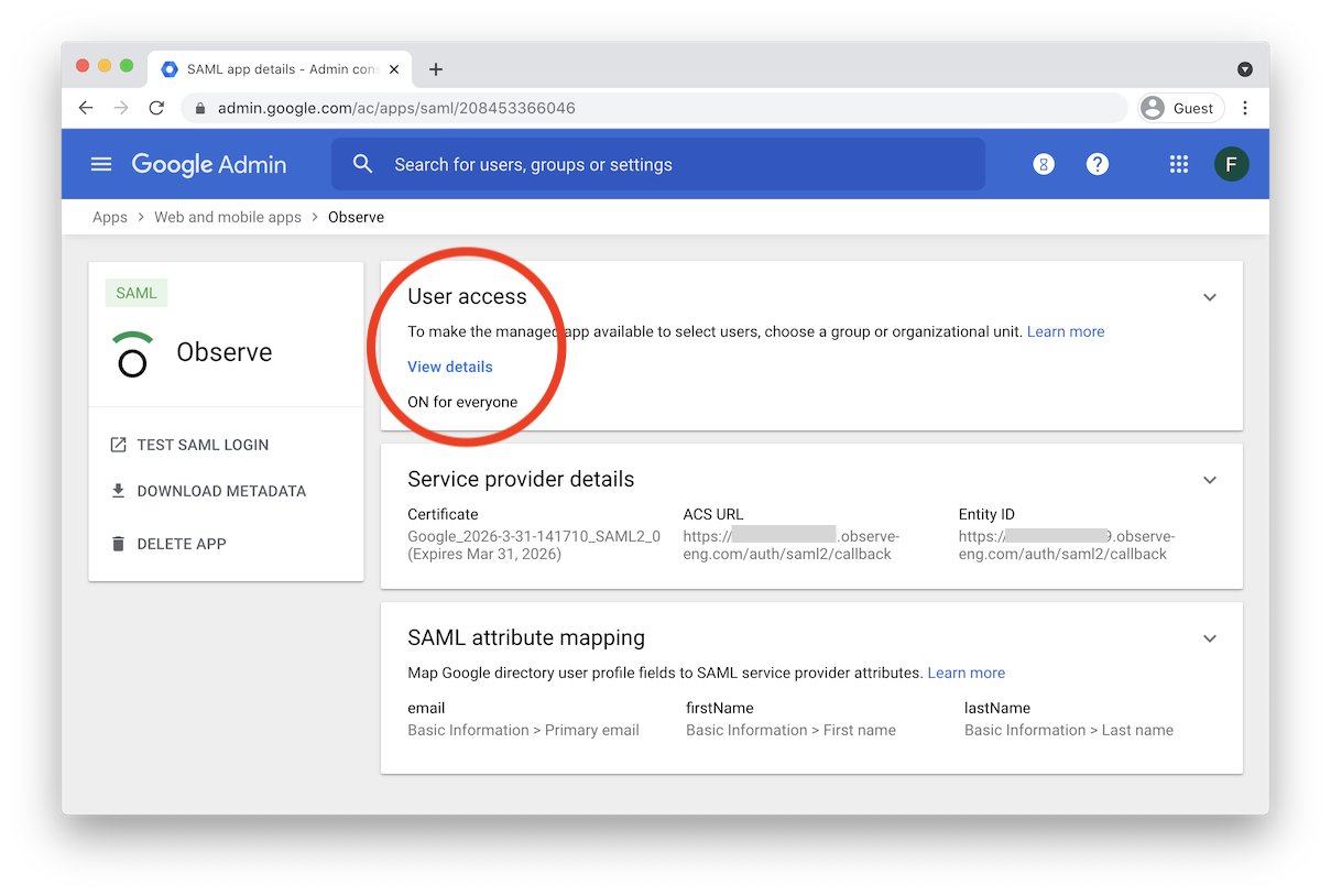 Configure Observe for Google Workspace SSO