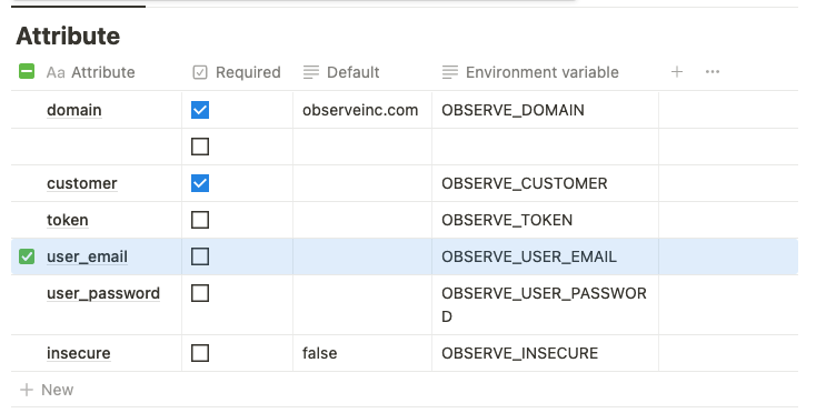Once you install Terraform, configure the provider, Observe, with the following attributes.