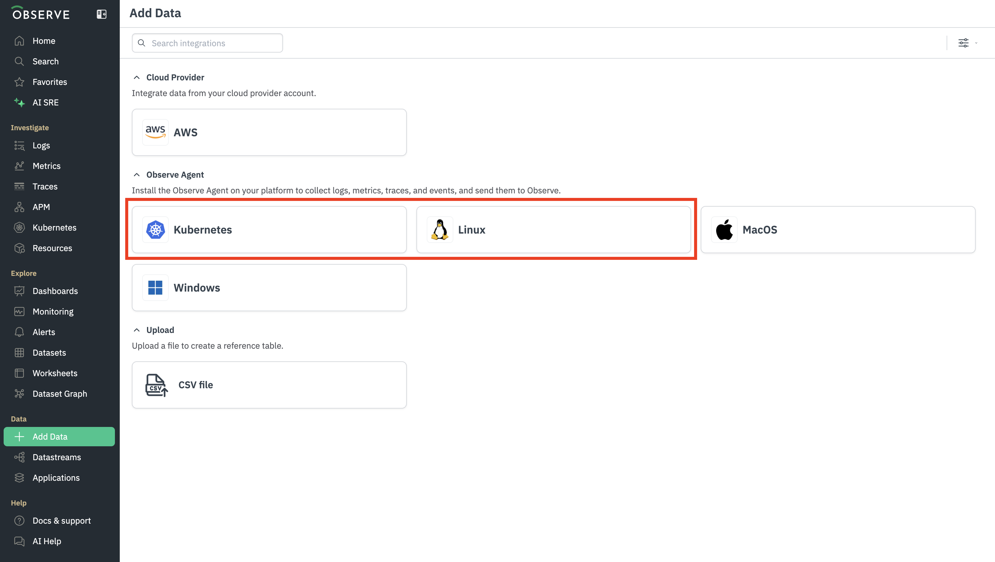 - Configure a Linux integration for all other environments, even if you are not running on Linux.