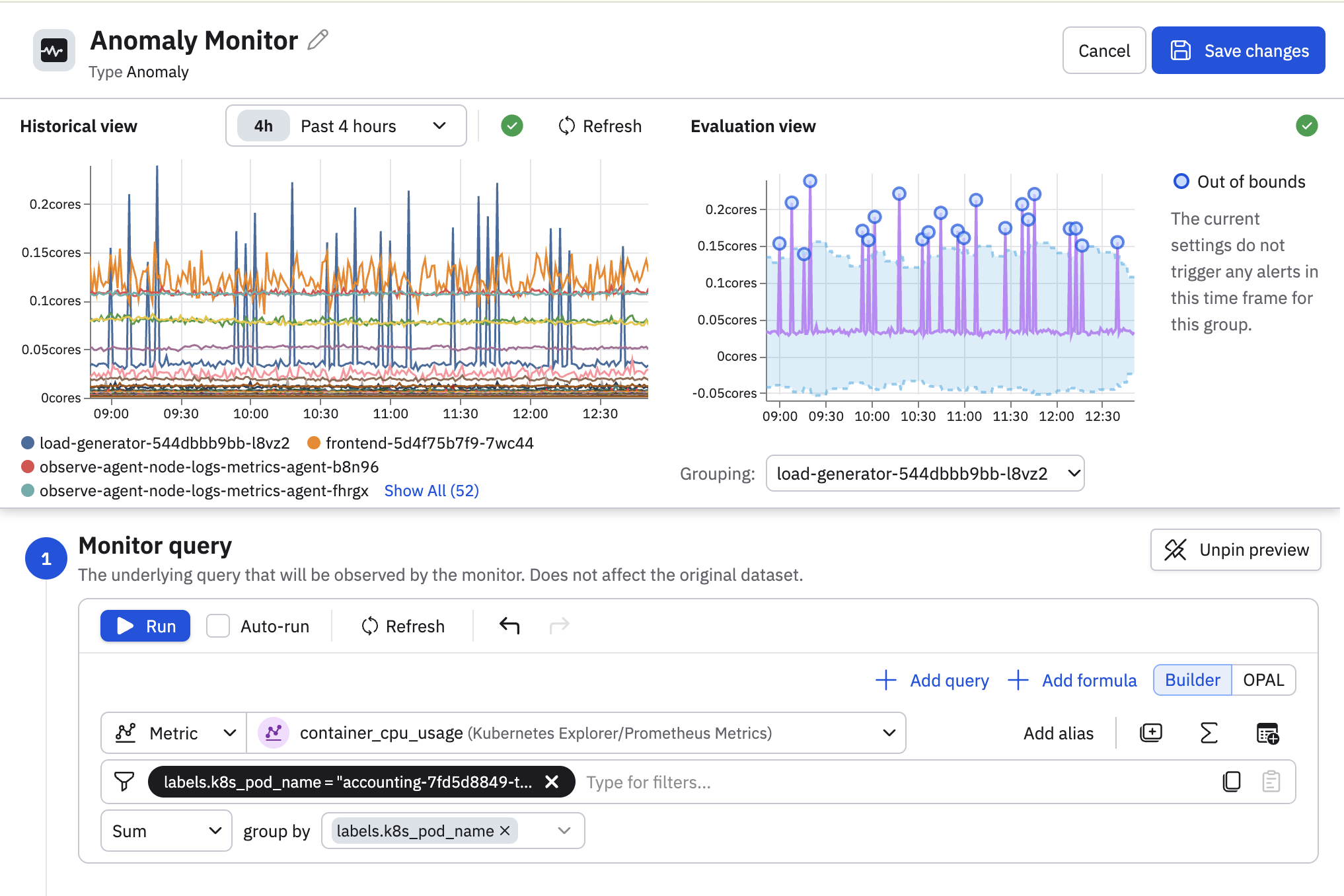 Click Save changes to create the anomaly monitor.