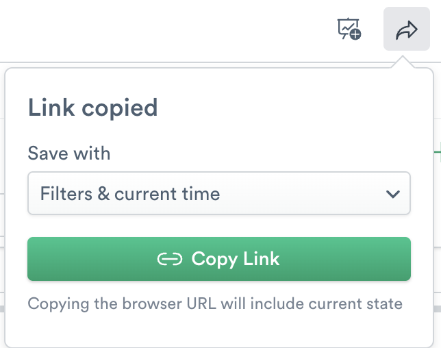 Often, when investigating in incident or simply exploring your data, you'll want to share your findings with someone else. To do this, use the Share icon next to Favorites. It's important to use the share button instead of simply copying the browser URL to ensure you capture the correct state (filters and time) that you intend to share.