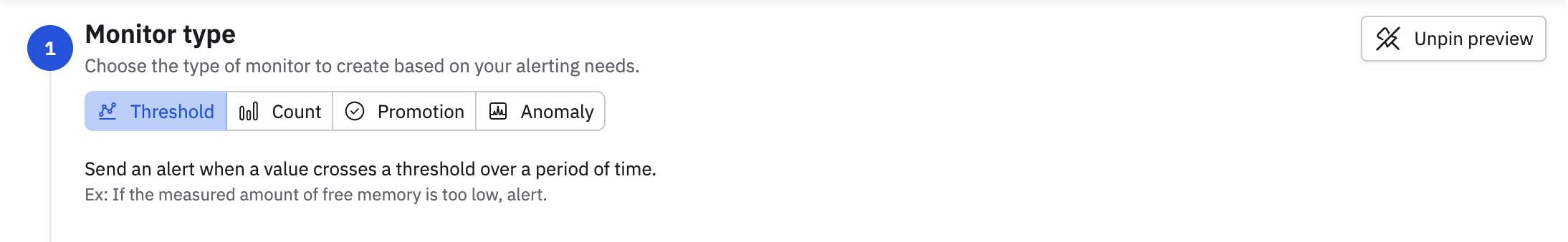 If this is not the type of Monitor you want to create, select the correct type before you continue.