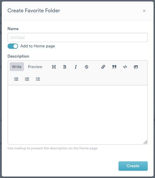 Optionally, you can add a description of the folder using Markdown or plain text.