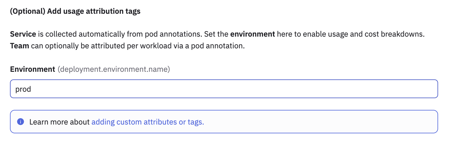 During the Observe Agent configuration, make sure to configure the deployment.environment.name for Kubernetes: