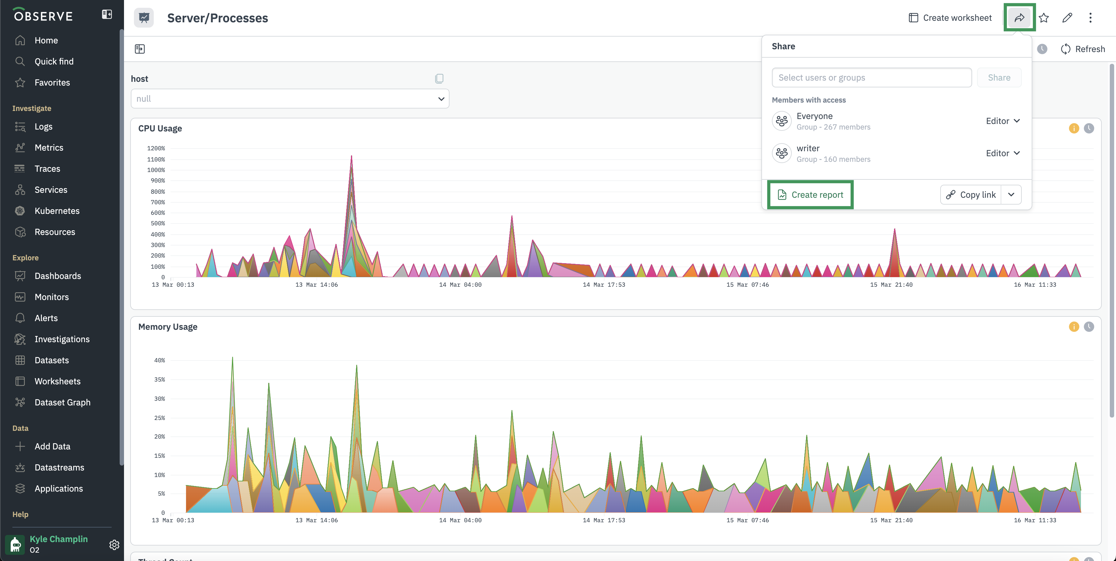 Observe provides the ability to generate high resolution PDFs of a dashboard, on a schedule of your choosing.