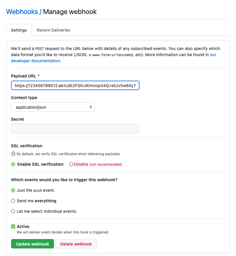 - Check that GitHub successfully sends the data.