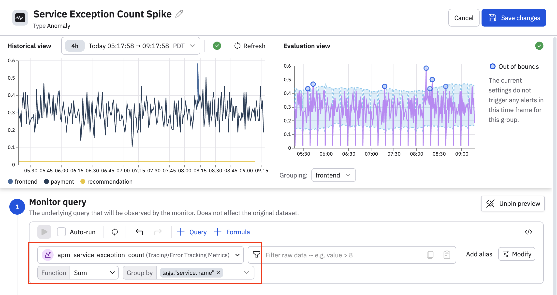 Click Save changes to create the anomaly Monitor.
