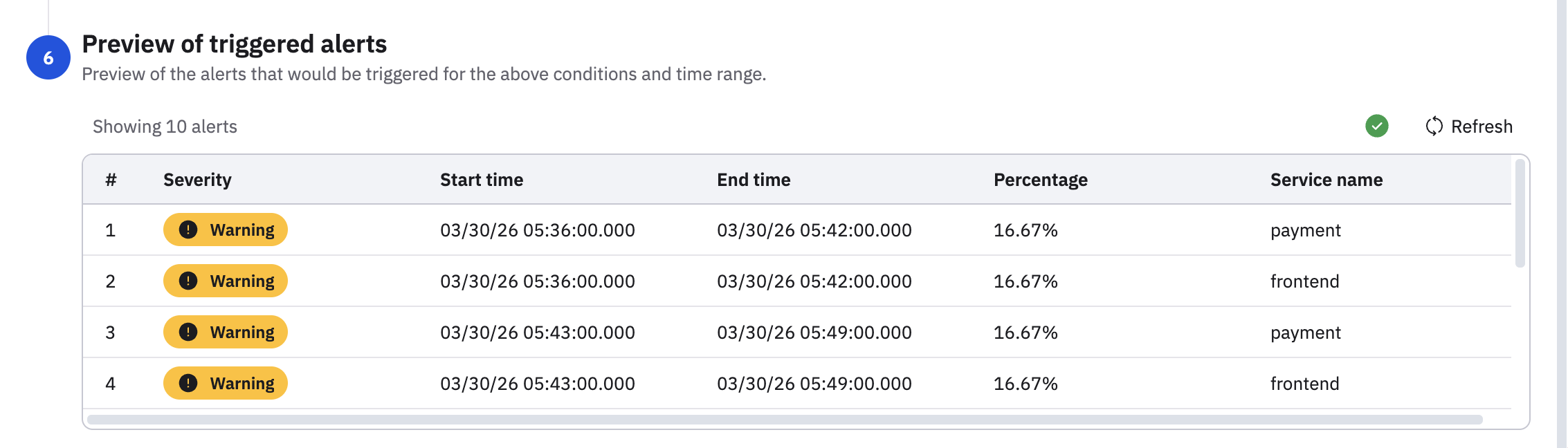 Scroll to the bottom of the Monitor configuration to get a preview of the alerts as they would appear in the Alert Explorer.