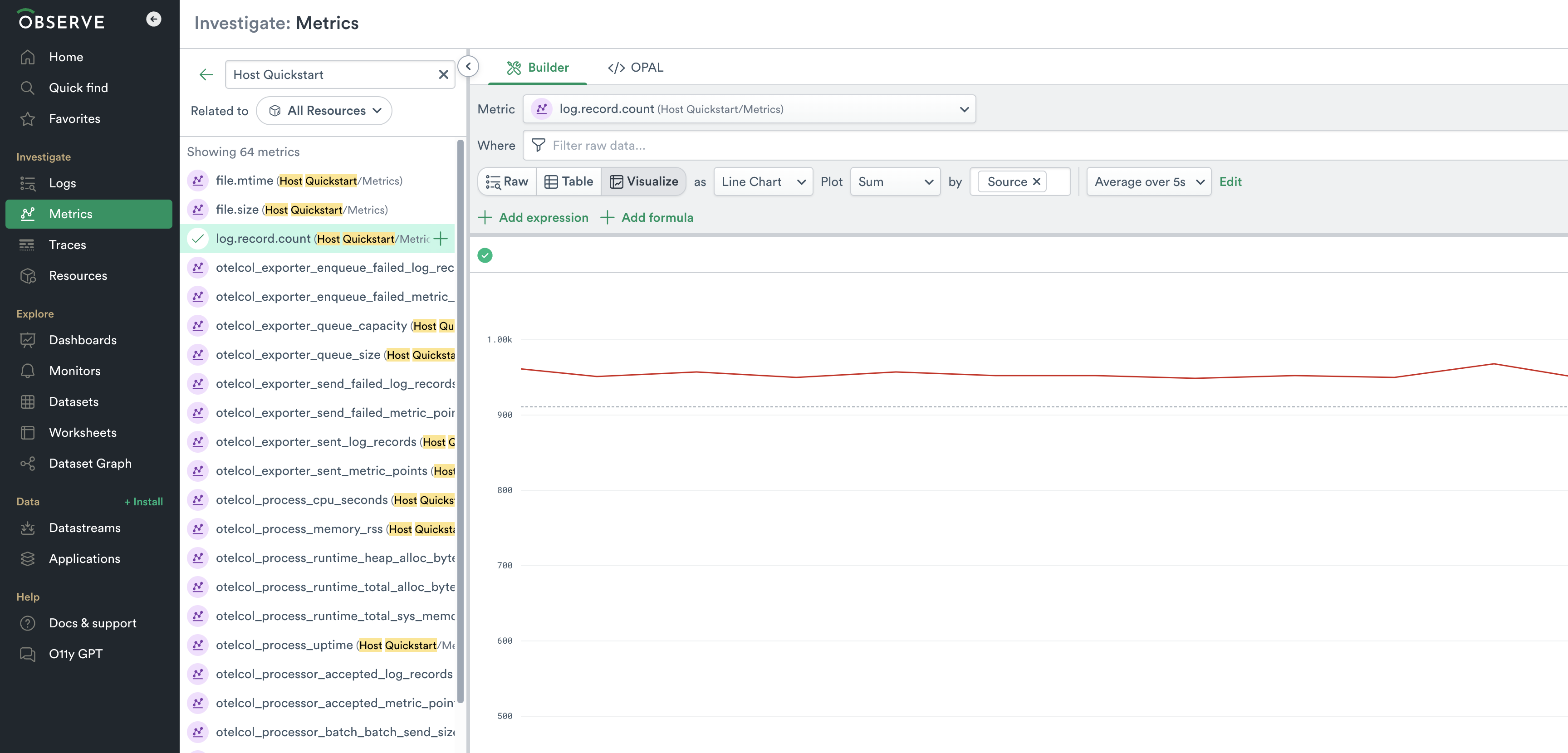 NoteThe Observe Agent sends metrics in Prometheus format by default. Since the Host Quickstart app is modeled on OpenTelemetry Metrics format, follow