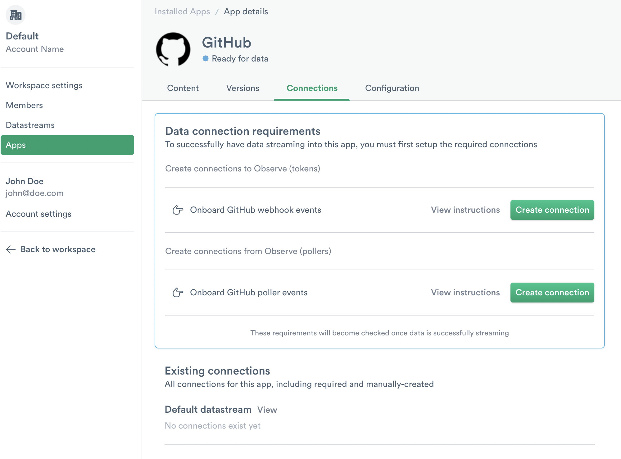You have now configured the GitHub app and can send your GitHub data to Observe.