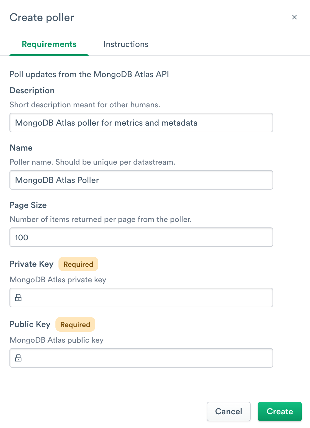 In Observe, configure the MongoDB Atlas Poller to collect and ingest data: