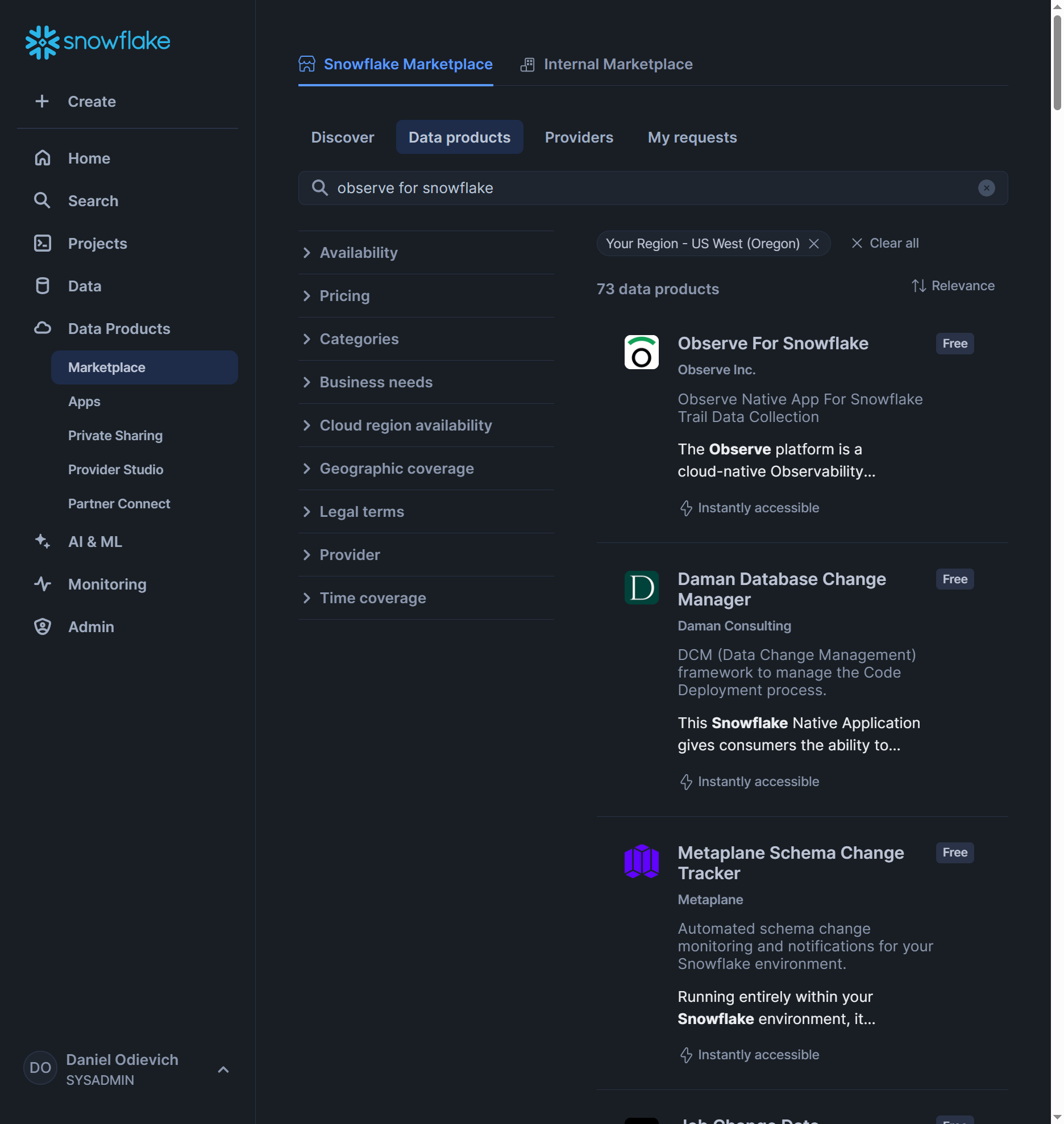 - Navigate to Data Products\Marketplace.