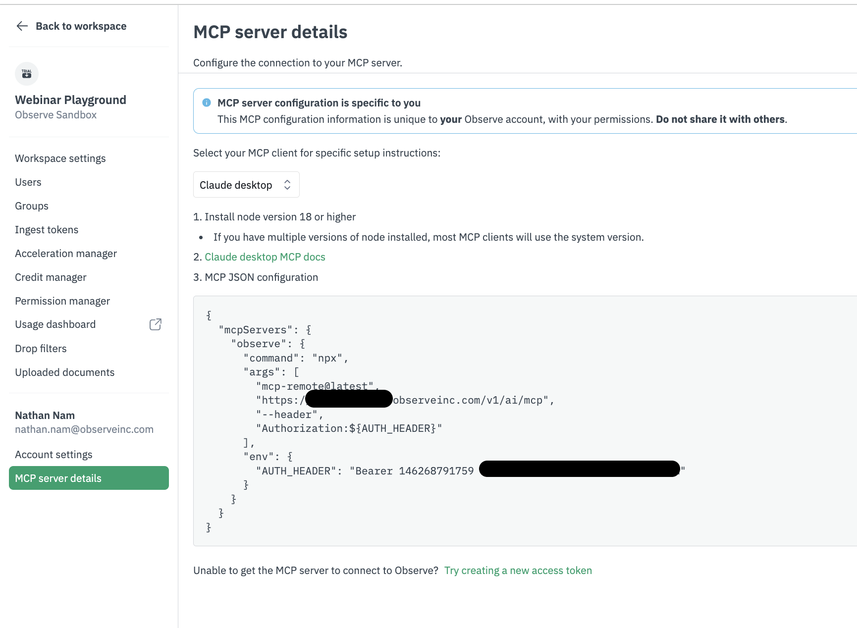 NoteModel Context Protocol (MCP) is in Private Preview. Contact your Observe representative for more information or open Docs & Support → Contact Support in the product and let us know.