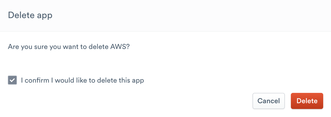 - Hover over the Trashcan icon, then click Delete to confirm app deletion.