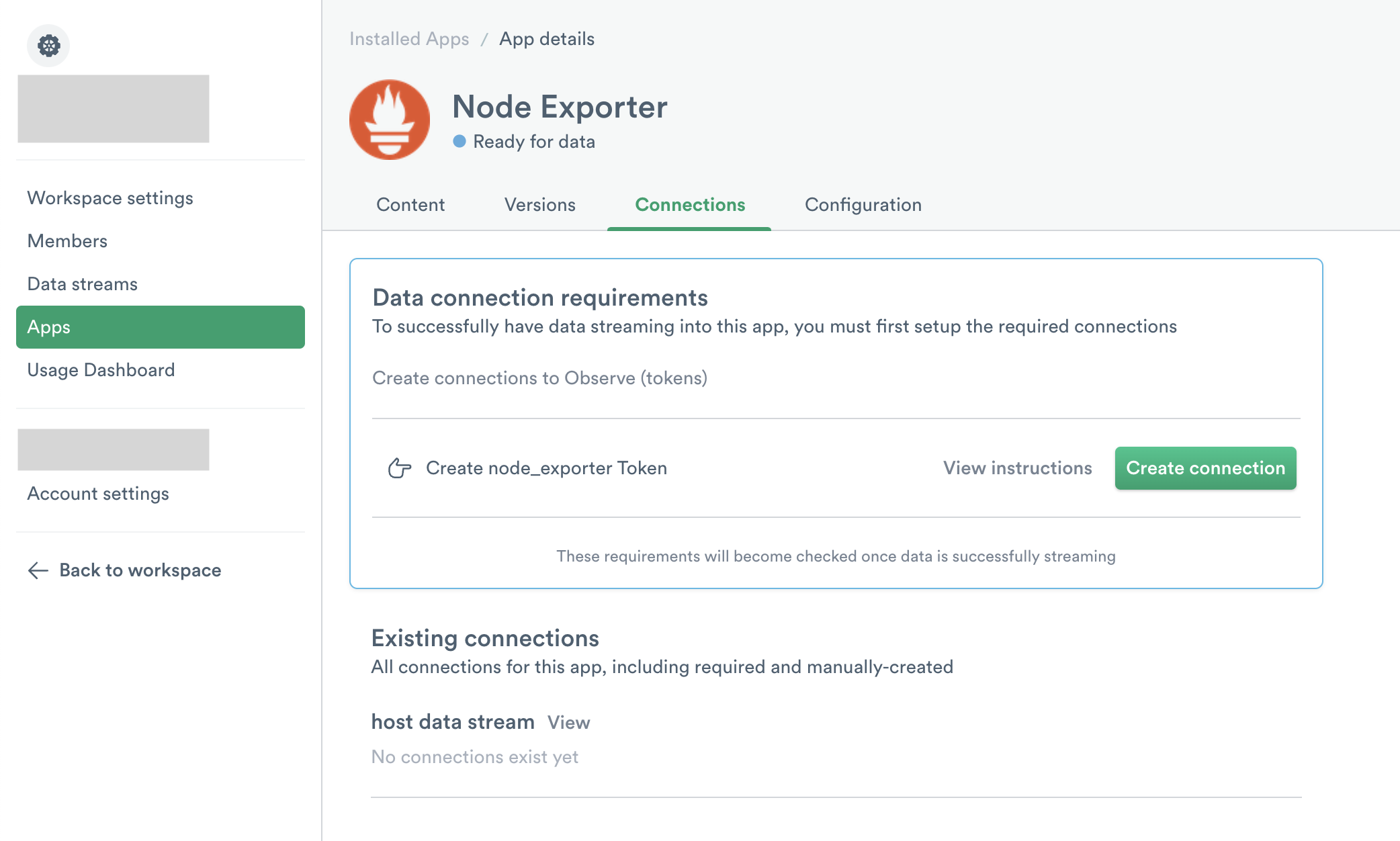 NoteThis setup follows the same procedure as creating a data connection in the Node Exporter app. If you have already created a data connection in the app, you do not need to perform these steps again.