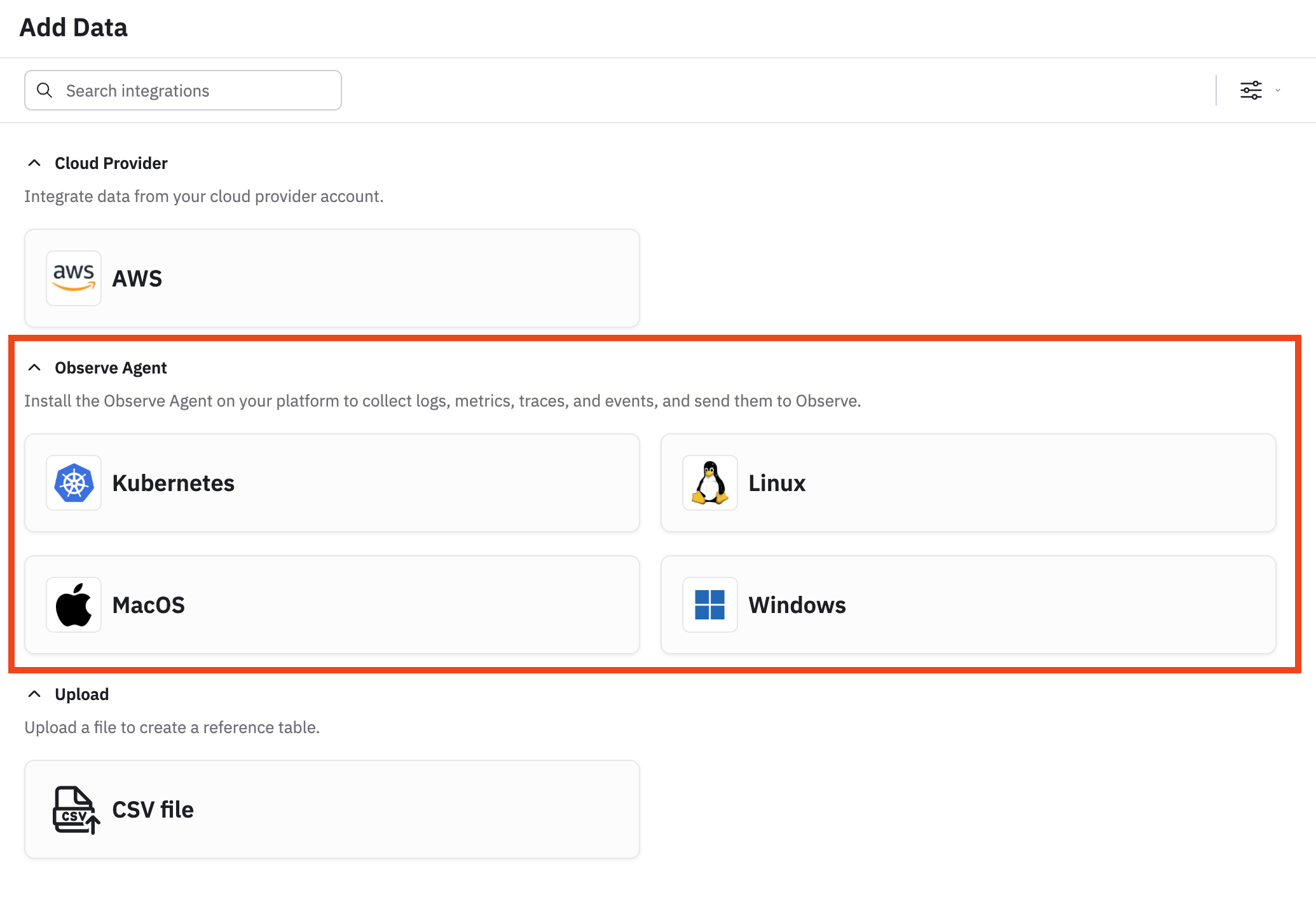 - In the Observe Agent section, pick your environment, then follow the instructions to create a data ingest token and install the Observe Agent.