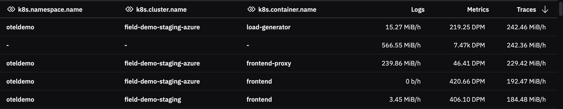 Usage attribution means you no longer need to build internal custom solutions to achieve charge-back or show-back models. Such solutions often relied on naming conventions such as datastream token names, or manually built dashboards. Usage attribution brings this into the product natively, with support for standardized resource attributes like deployment.environment.name, service.name, and team.name.