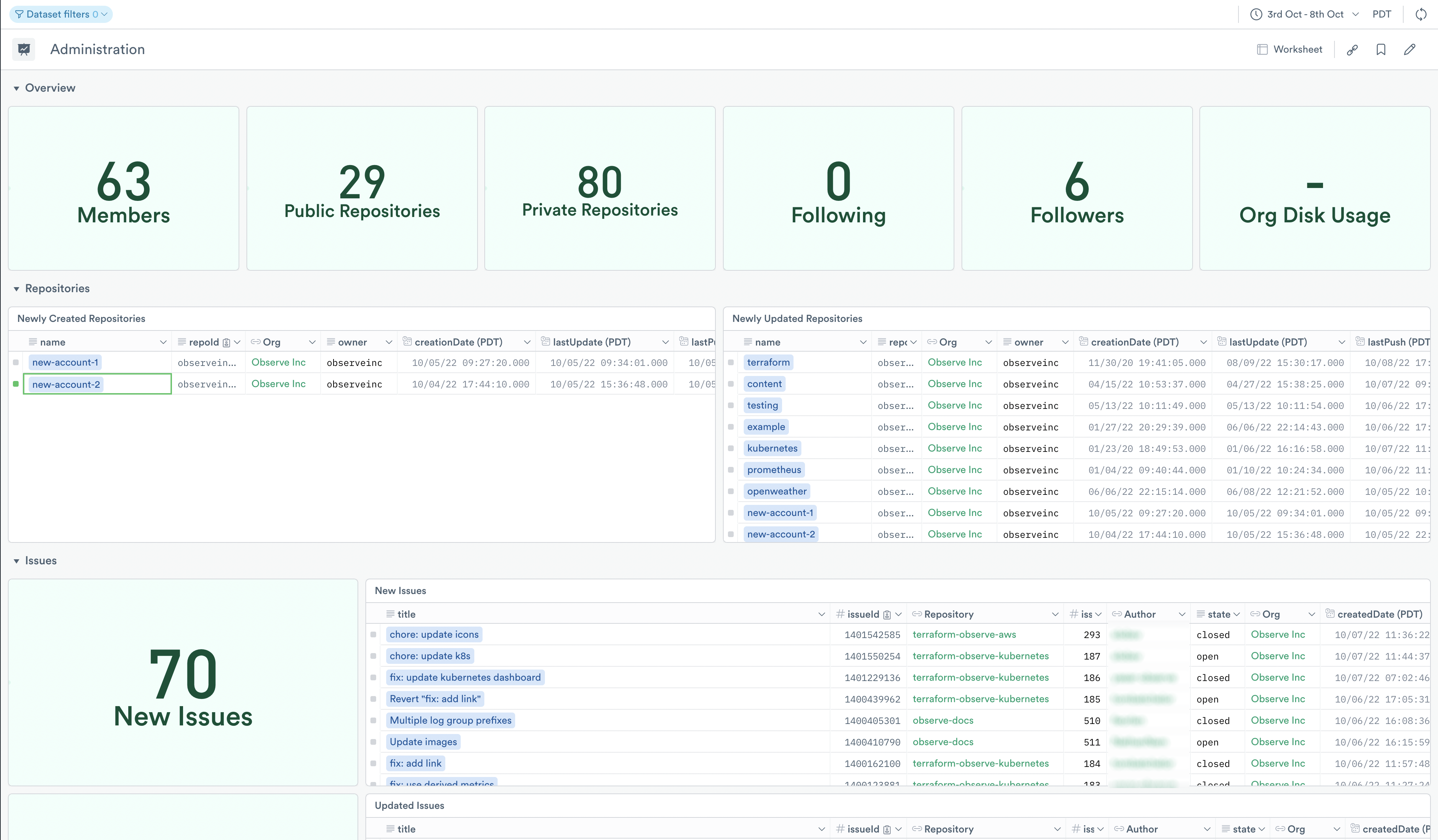 View GitHub data in Observe