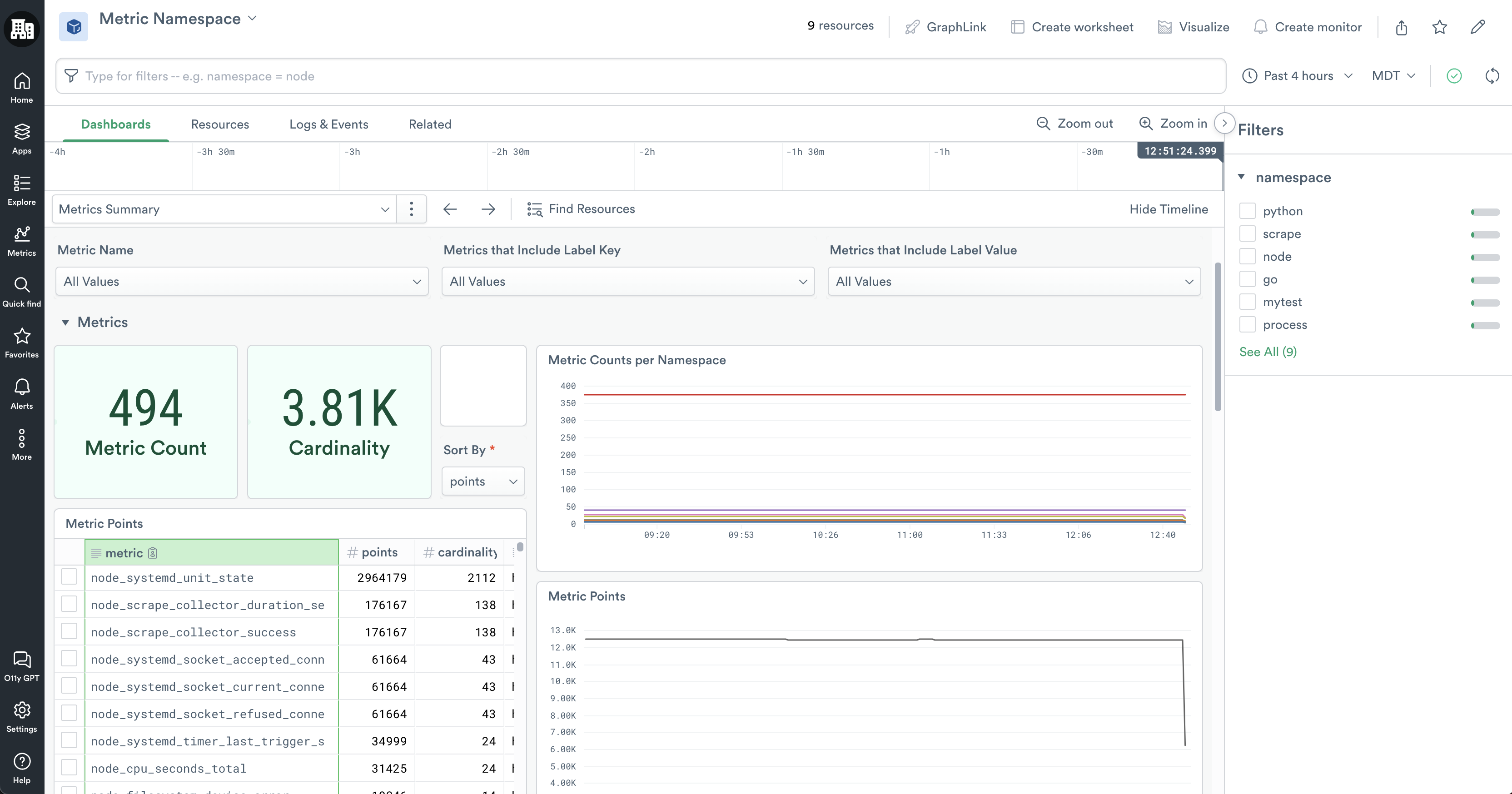 View the Metric Summary dashboard to analyze and troubleshoot how Prometheus generates your metrics by examining the following information: