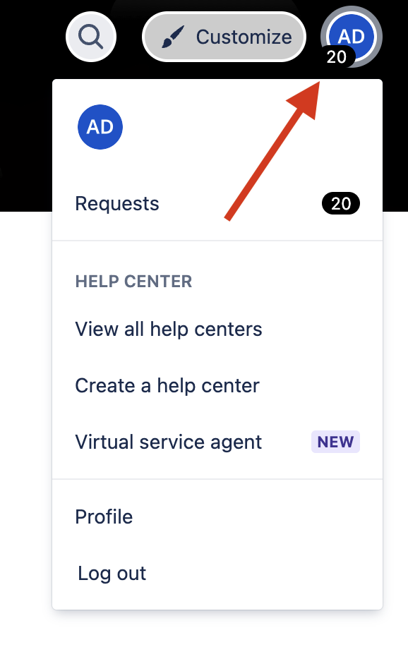 To view the requests you have submitted and the requests that have been shared with you click on your initials in the upper right hand corner and then select Requests: