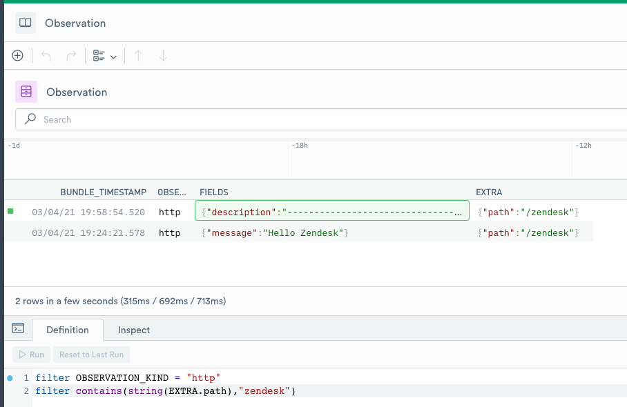filter OBSERVATION_KIND = "http" filter contains(string(EXTRA.path),"zendesk") -